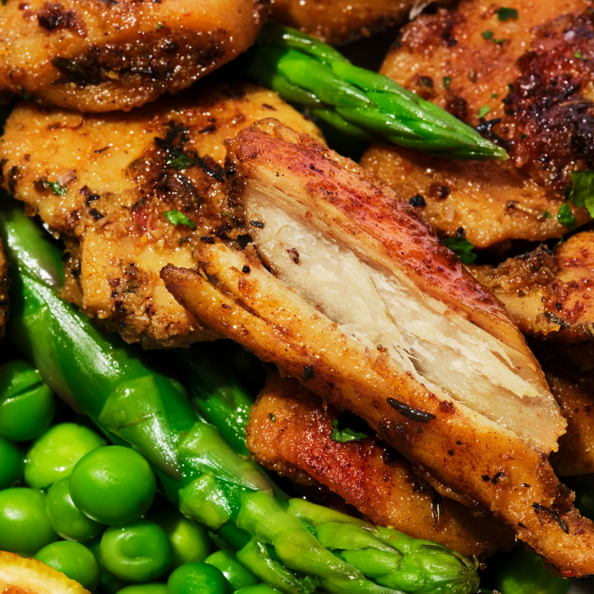 Our chicken fillet sets a new benchmark in the category of plant-based meat products. Building on our planted.chicken know-how combined with our fermentation technology, we have been able to produce an outstanding piece of meat with extra juiciness, amazing bite and high protein content. We only use a few natural ingredients such as peas, rapeseed oil, water, salt, yeast and spices - and of course a healthy dose of vitamin B12. The planted.chicken fillet is appreciated by star chefs throughout Europe who delight their guests with the fillet on their menus. It is an extremely versatile piece of meat - whether grilled with your next Ceasar salad or as a tasty centerpiece of the plate with your favorite side dishes. The chicken fillet is perfect for creative people and goes well with a wide range of recipes.